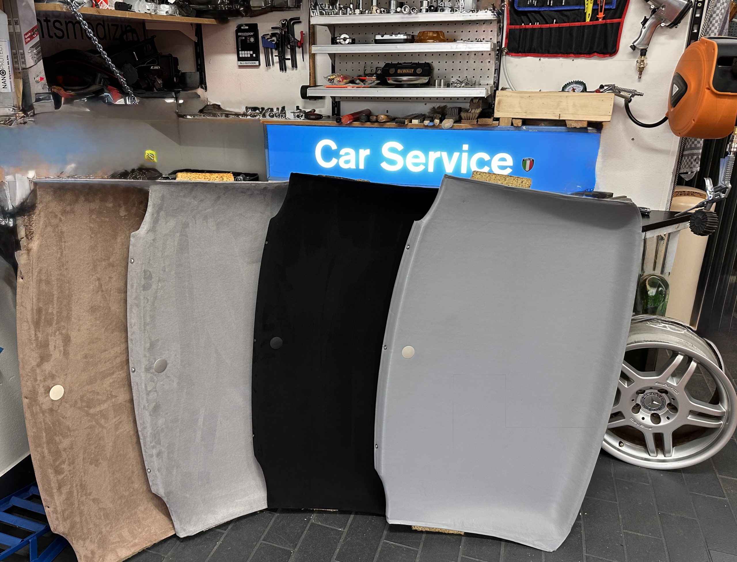 Ist Ihr Dachhimmel verschmutzt oder hängt durch? Wir beziehen jeden Himmel, den Sie uns liefern, mit hochwertigem Kunstwildleder ( wie Alcantara ) in einer Vielzahl von Farben. Sprechen Sie uns gerne an, insbesondre im Zusammenhang mit durchhängenden Dachhimmeln sind wir ihr Ansprechpartner. Auch für andere Fahrzeuge bieten wir den Neubezug des Dachhimmels an.